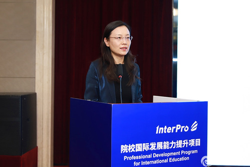 中国教育国际交流协会会员工作部副主任刘筱蒙作“院校高质量推动国际化课程建设路径探索”主旨报告。